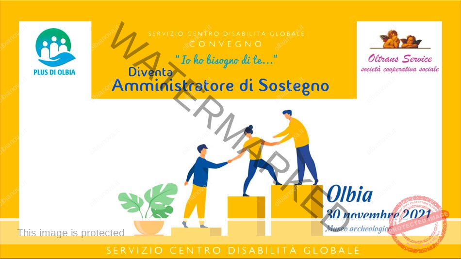 L’Assessore alle Politiche Sociali del Comune di Olbia dott.ssa Simonetta Lai è lieta di comunicare che dalle 16:30 alle 18:30 del 30 novembre 2021 presso il Museo Archeologico di Olbia si terrà il convegno “Io ho bisogno di te…Diventa Amministratore di Sostegno” realizzato dal PLUS di Olbia e dalla Cooperativa Oltrans Service nell’ambito del Servizio Centro Disabilità Globale Gestione PLUS e volto a promuovere la figura dell’Amministratore di Sostegno.