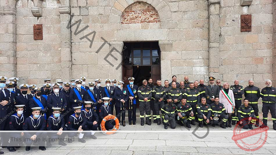 Al termine del rito religioso il direttore marittimo Giovanni Canu e il comandante provinciale dei Vigili del fuoco, Gianfrancesco Monopoli hanno ringraziato i partecipanti prima della consueta foto di gruppo.