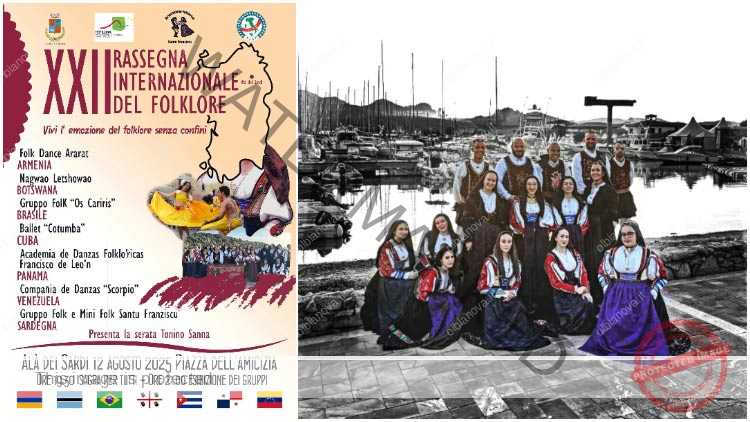 Alà dei Sardi, 6 agosto 2025 – Tutto pronto per la XXII Rassegna Internazionale del Folklore, in programma martedì 12 agosto nella centrale Piazza dell’Amicizia ad Alà dei Sardi. L’iniziativa, organizzata dal Gruppo Folk Santu Franziscu con il patrocinio del comune di Alà dei Sardi e della F.I.T.P. – Federazione Italiana Tradizioni Popolari, porterà sul palco danze, musiche e costumi provenienti da tutto il mondo.
