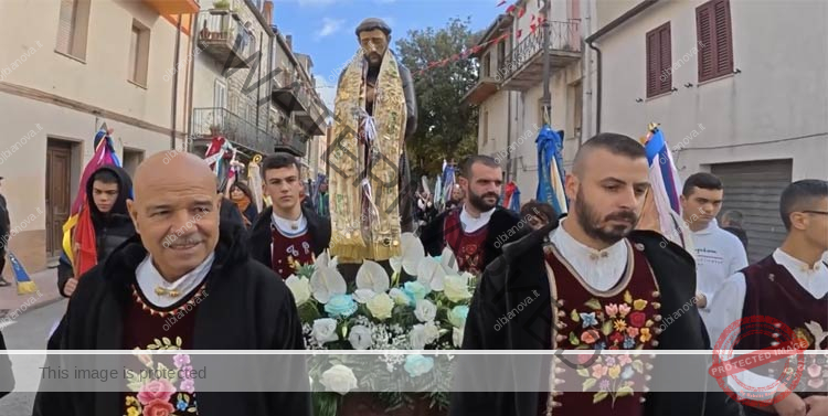 IL CORTEO. La processione di preghiera percorre i due chilometri del sentiero che conduce alla chiesa. In testa la banda di Olbia Felicino Mibelli, seguita dai gruppi folk alaesi di piccoli e adulti. Il clero precede la statua del santo, portata a mano dagli uomini in abito tradizionale. Seguono il sindaco Francesco Ledda e i primi cittadini dei comuni vicini. Guida il corteo il vescovo di Ozieri, Corrado Melis, che sottolinea l’importanza del santo per gli alaesi, fedeli ai suoi insegnamenti da oltre cento anni.