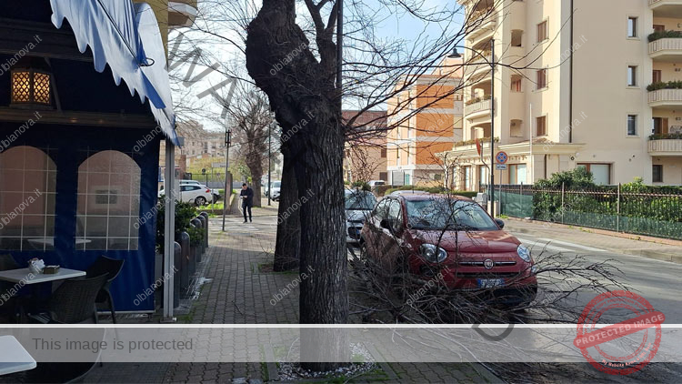 Olbia 12 febbraio 2026 – Il forte vento ha spezzato un grosso ramo di un albero secco in via Vittorio Veneto, a pochi metri dal Bar Dolce Vita, che si è abbattuto su una Fiat Cinquecento parcheggiata lungo la strada.