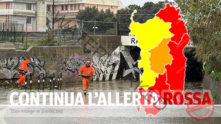Olbia 19 gennaio 2026 L’allerta rossa continua a gravare sulla Sardegna orientale e l’allarme resta massimo a Olbia e in Gallura. Nessun declassamento. Le previsioni indicano un ulteriore peggioramento delle condizioni generali già dal pomeriggio e la giornata scorre sotto il segno dell’attesa.