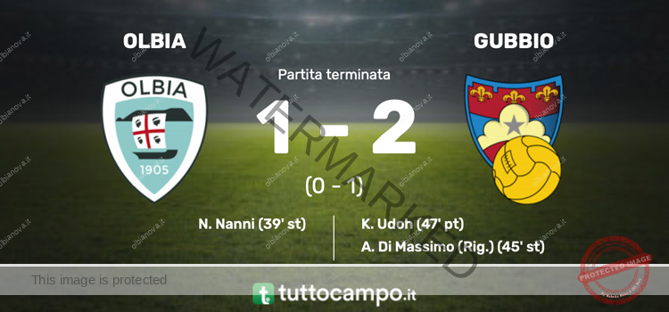 Non va! L’Olbia anche questa volta esce con le ossa rotte da una partita che avrebbe dovuto e voluto vincere per rimanere aggrappata al carro dei play out. Un’Olbia arrembante cede le armi dopo una partita per niente male ma nel calcio vince sempre chi fa un gol in più dell’avversario. Le reti, al quarantaseiesimo l’ex Udoh, all’ottantatreesimo Nanni pareggia poi il Gubbio chiude le sorti dell’incontro su calcio di rigore con gol di Di Massimo.