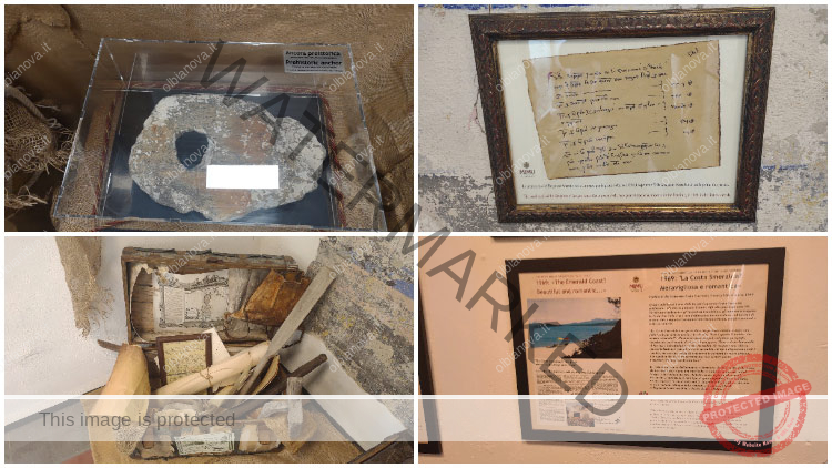 Il museo espone al suo interno un’ancora preistorica, elementi della quotidianità della civiltà dello stazzo, la macchina per scrivere che trascrisse i primi atti di compravendita della Costa Smeralda e pannelli bilingue in italiano e inglese che raccontano pillole di storia conosciute e inedite della storia di Arzachena.