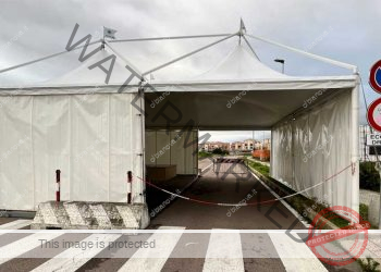 E dopo lunghe preghiere, vista anche la vicinanza della chiesa, da parte degli operatori della Assl di Olbia, un gazebo...