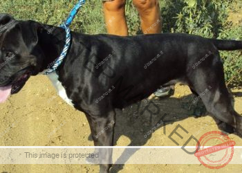 Almeno tre pre persone sono state azzannate da un cane di razza AmStaff nero (simile a quello in foto) che...