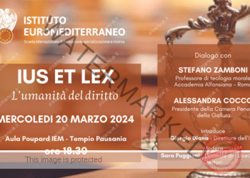 Mercoledì 20 marzo 2024, alle ore 18.30, presso l'Istituto Euromediterraneo a Tempio Pausania, avrà luogo il convegno "Ius et lex:...