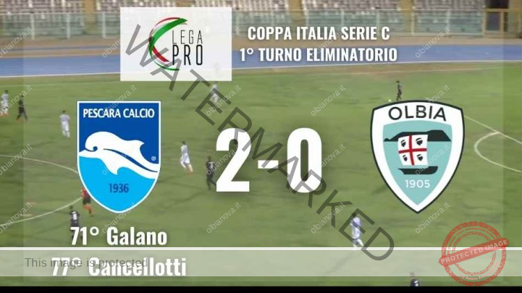 Finisce 2-0 la partita tra Pescara e Olbia valida per il 1° turno eliminatorio della Coppa Italia di serie C. Troppo forti gli abruzzesi per i bianchi che riescono a resistere un tempo poi crollano sotto i colpi di Galano e compagni: non basta un ottimo Ciocci ad evitare la sconfitta.