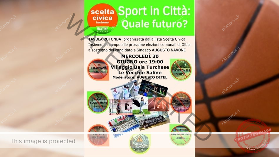 La lista Scelta Civica Insieme organizza una tavola rotonda dal titolo “Sport in città, quale futuro” che si svolgerà mercoledì 30 giugno alle 19:00 al villaggio Baia Turchese (Vecchie Saline).