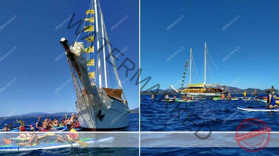 Nel secondo giorno a Olbia, Goletta Verde di Legambiente ha esplorato parte del golfo di Olbia. In compagnia di barche, canoe, SUP e kayak la navigazione di Goletta Verde è giunta fino a Capo Ceraso.