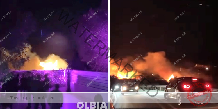 Incendio al Pevero. Le fiamme viste dal Justme che interrompe la musica