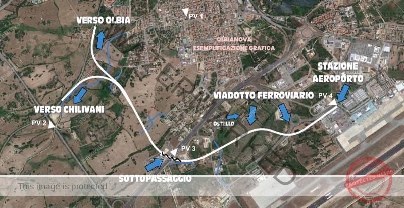 IL TRACCIATO (segui la descrizione sulla mappa). Il nuovo collegamento ferroviario si estenderà per 3,4 chilometri e connetterà il binario in arrivo a Olbia nell’area di Micaleddu (oltre il passaggio a livello di via Lupacciolu) dove sarà realizzato un doppio bivio per connettersi alla rete esistente: uno in direzione Olbia, l’altro verso Chilivani. Il percorso proseguirà su terreni agricoli e passerà sotto la quattro corsie Olbia-Sassari attaverso una galleria artificiale di 450 metri. A seguire, dove ora si trova l’ex ostello della gioventù (che verrà demolito per far posto a un grande parco verde come previsto dal progetto di mitigazione del rischio idraulico Technital), si alzerà in un viadotto di 900 metri con i piloni di sostegno che porteranno alla stazione, sempre sopraelevata, dell’aeroporto (come da fotosimulazione in copertina).