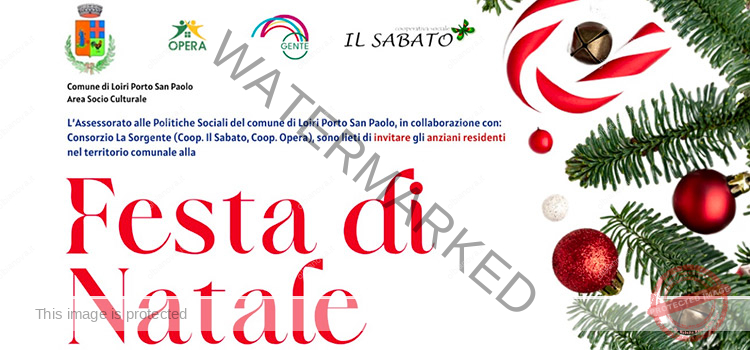 LOIRI PORTO SAN PAOLO. Sarà la festa dell’anziano, in programma sabato 7 dicembre e organizzata dal Comune e dal settore Servizi socio-culturali, ad aprire ufficialmente il calendario di appuntamenti natalizi del comune di Loiri Porto San Paolo.