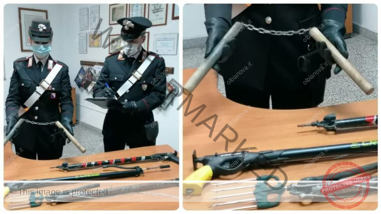 I Carabinieri di La Maddalena, durante un servizio perlustrativo, hanno denunciato all’Autorita Giudiziaria, in stato libertà, E.C.,operaio maddalenino di 24 anni, già noto alle Forze dell’Ordine, poiché, all’interno della sua auto, è stato trovato in possesso di tre fucili da sub, di cui due con arpione e fiocina già armati ed uno con asta senza punta priva di elastico.