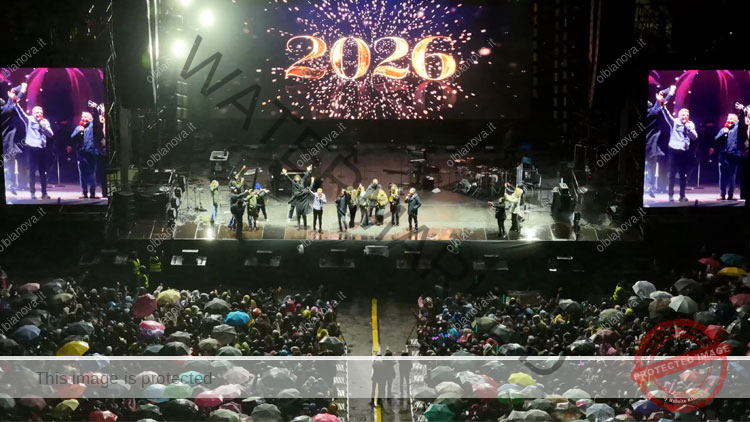 ★VIDEO★ Olbia 1 gennaio 2026 – La pioggia non ha fermato il Capodanno a Olbia. In circa 20mila hanno salutato l’arrivo del 2026 nell’inedita piazza ricavata al porto Isola Bianca, disposti nelle due aree contingentate fronte palco. Una marea di ombrelli ha accompagnato la lunga attesa e poi il concerto di Marco Mengoni, iniziato persino in anticipo nonostante le condizioni meteo avverse.