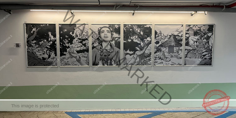 OLBIA. Dal 2 dicembre al 31 gennaio 2025, il Parcheggio San Simplicio, gestito dall’Aspo, ospita l’installazione “Al di là del fiume” dell’illustratore Antonio Polese, un omaggio creativo al patrimonio archeologico cittadino. L’opera, progettata appositamente per questo spazio espositivo, prende ispirazione dalla collana punica in pasta vitrea, un reperto risalente al IV-III secolo a.C., ritrovato a Funtana Noa nel 1937 e oggi custodito al Museo Archeologico di Cagliari.