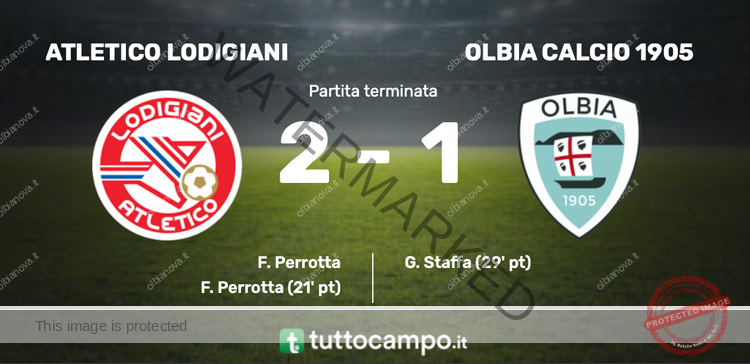 Anche la Lodigiani riesce a imporsi sull’Olbia che questa volta sembra fare due, se non tre, passi indietro rispetto alle recenti prestazioni positive, anche se prive di risultati. La squadra ospite passa in svantaggio al ventunesimo minuto del primo tempo, quando Perrotta ha tutto il tempo di superare il suo marcatore, disorientare il portiere e depositare la palla in rete con facilità.