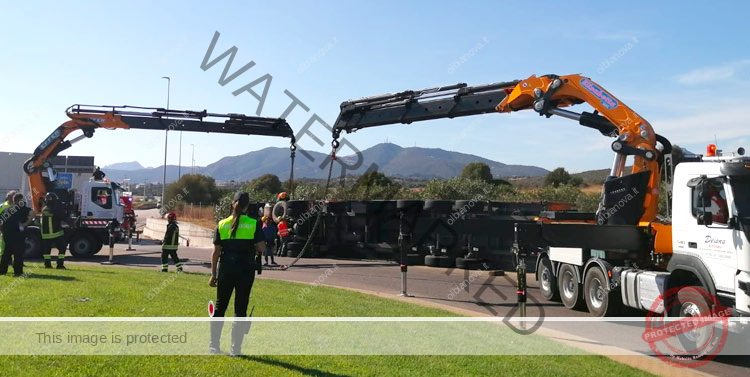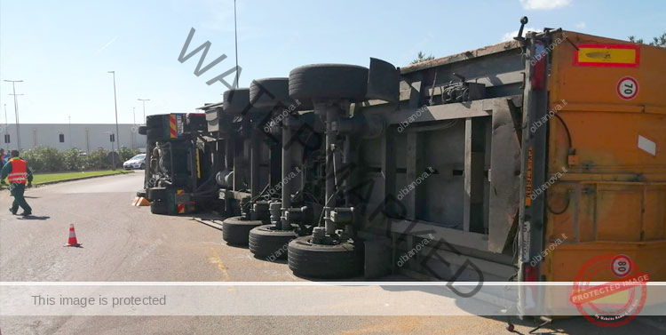 Olbia. Un autoarticolato della De Vizia, l’azienda che si occupa della raccolta dei rifiuti a Olbia, si è ribaltato nel pomeriggio nei pressi della rotatoria dell’Eurospin, sulla strada per Golfo Aranci.  Sul posto è intervenuta la Polizia Locale di Olbia che effettuato i rilievi del sinistro e ha bloccato il traffico per consentire le delicate operazioni di recupero del mezzo. Illeso il conducente. Non si segnalano feriti.