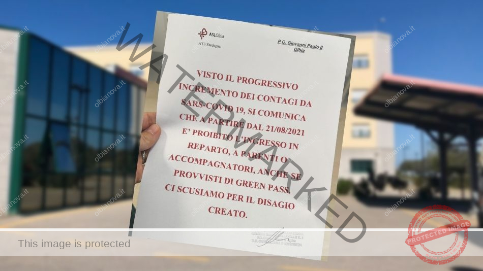 “Visto il progressivo incremento di contagi da sars-covid 19, si comunica che a partire dal 21 agosto è proibito l’ingresso in reparto a parenti o accompagnatori anche se provvisti di green pass. Ci scusiamo per il disagio”.