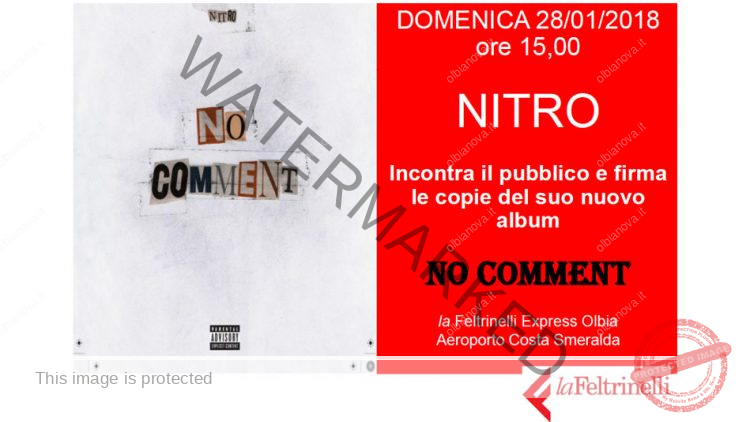 No Comment è il terzo album in studio del rapper Nitro, pubblicato il 12 gennaio 2018 dalla Machete Empire Records e distribuito dalla Sony Music e dalla Epic Records. L’appuntamento con Nitro è fissato per domenica 28 gennaio alle ore 15:00 a La Feltrinelli, nell’aeroporto Olbia Costa Smeralda. Il rapper incontrerà il pubblico e firmerà le copie del suo nuovo album.