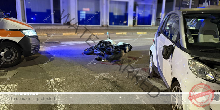 OLBIA. Nel tardo pomeriggio si è verificato un incidente in via Vittorio Veneto, all’altezza dell’incrocio con via Liguria. Per cause da accertare dalla Polizia Locale di Olbia, una Smart si è scontrata con una motocicletta guidata da un giovane, successivamente trasportato in ospedale in codice giallo dall’ambulanza della ASL. Le sue condizioni non sono apparse gravi. Il traffico ha subito rallentamenti fino alla completa rimozione dei veicoli.