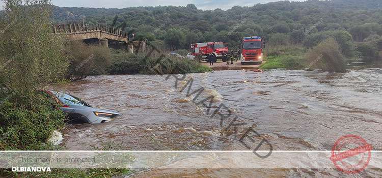 Olbia. Auto travolta dalla furia delle acque del rio. Tre persone in salvo
