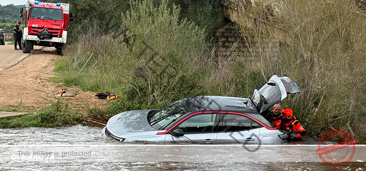 La macchina, che stava passando sopra il ponticello in cemento, è stata travolta dalla corrente impetuosa e spinta a pochi metri di distanza. A bordo c’erano tre persone che, fortunatamente, sono riuscite a mettersi in salvo.