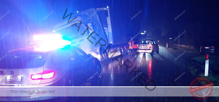 In quell’istante, dal senso inverso, stava sopraggiungendo un autoarticolato. Il suo conducente, per evitare di impattare frontalmente con l’auto, ha stretto il più possibile a destra, finendo in cunetta. L’autovettura ha urtato la fiancata sinistra dell’autoarticolato fermandosi a centro strada. Per fortuna l’incidente sarà archiviato con soli danni ai mezzi. Tutti gli occupanti sono usciti indenni.