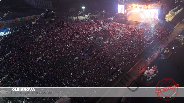 ★VIDEO★ OLBIA. Un Capodanno da record per il comune di Olbia. Circa 50mila persone si sono riversate tra il molo Brin e la zona Sacra Famiglia per accogliere il 2025. Sul palco per il tradizionale countdown e il brindisi di mezzanotte sono saliti i Pinguini Tattici Nucleari, reduci da un concerto coinvolgente ed emozionante, insieme al sindaco di Olbia Settimo Nizzi e all’assessore ai Grandi Eventi Marco Balata, “investiti” da una pioggia di spumante.  Di seguito il video con il brindisi di mezzanotte, accompagnato dai tradizionali fuochi d’artificio che hanno illuminato il cielo sopra la città ⬇️