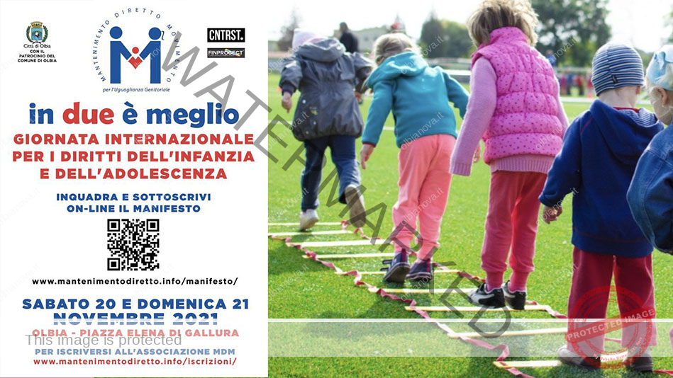 A sostegno dei diritti dell’infanzia e dell’adolescenza, e al diritto alla bigenitorialità oggi, sabato 20, e domani, domenica 21 novembre 2021, in piazza Elena di Gallura a Olbia, si svolgerà il convegno “In due è meglio”. I delegati, Maddalena Multineddu e Stefano Balata invitano la cittadinanza a partecipare.