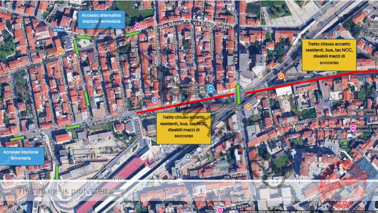 Via Mameli e via San Simplicio resteranno percorribili ma senza possibilità di immettersi nei tratti interdetti. Potranno circolare soltanto mezzi pubblici, taxi, NCC, residenti, veicoli per persone con disabilità, soccorso e polizia, con velocità massima di 20 km/h. Per raggiungere la nuova stazione ferroviaria “Olbia Terranova” sarà preferibile utilizzare via Unità d’Italia, mentre non sono previste modifiche per la vecchia stazione.