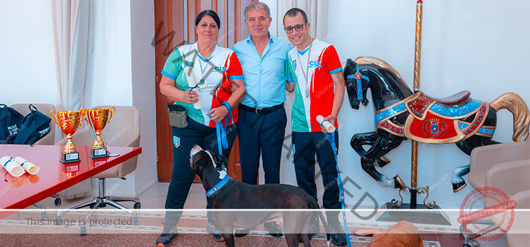 OLBIA. Il sindaco di Olbia Settimo Nizzi ha incontrato Fabrizio Pinna e Patrizia Prisco. I due atleti olbiesi, accompagnati dai cani Kira e Pablo, fanno parte della squadra che ha vinto l’International Mix & Breed Championship Agility 2024 e il Paragility World Championship.