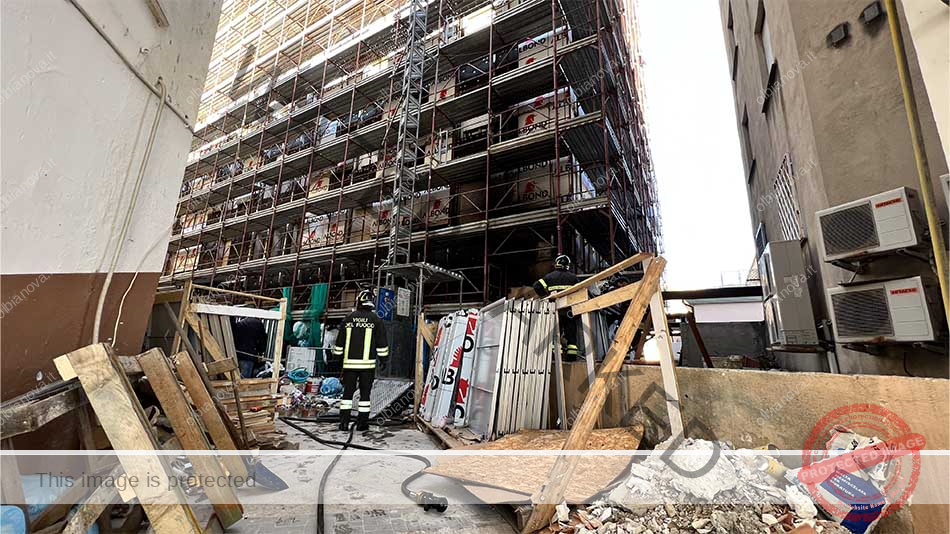I lavori del cantiere, tutt’ora sospesi per le festività, riguardano in gran parte l’esterno della torre che si affaccia su via Genova. Le fiamme si sono sviluppate poco oltre la scala di accesso. A quanto hanno verificato i Vigili del Fuoco, intervenuti rapidamente, sono stati proprio i pannelli realizzati secondo le norme antincendio a trattenere le fiamme e a evitare il loro propagarsi.