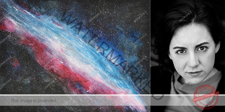 Le nebulose ricordano vagamente alcune parti del nostro corpo, come l’articolazione della spalla o dell’anca, e mi è piaciuta l’idea di ricercare una connessione non solo con la natura terrestre ma con tutte le galassie. L’acquerello si presta molto bene a questo genere di figure”.