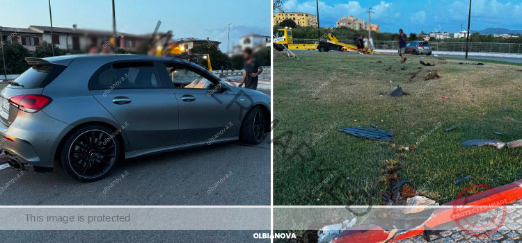 OLBIA. Una banale distrazione costerà cara al proprietario di un Mercedes Classe AMG che ha attraversato tutta la rotatoria di Isticadeddu, tagliandola diametralmente e sfiorando l’albero al centro, e sbucando sul fronte opposto.