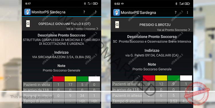 Come si può notare, nello stesso momento, Olbia gestiva 1 codice rosso e 22 pazienti non gravi mentre Cagliari non aveva persone in pericolo di vita e assisteva 22 pazienti. Ma il dato impressionante riguarda i “pazienti in attesa” tra gialli, verdi e bianchi a Olbia erano 44 fuori dal Pronto Soccorso con un tempo medio d’attesa di 6 ore mentre al Brozzu attendevano le cure soltanto 11 persone (4 volte in meno) con un tempo di attesa medio di circa 4 ore.