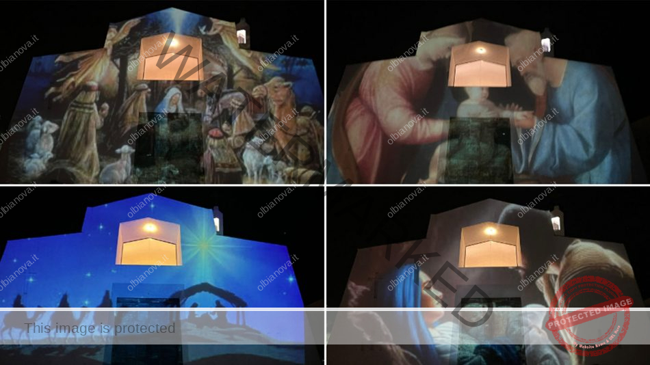 Un modo per fare gli auguri di Buon Natale ai parrocchiani da parte di don Theron Casula che, con il supporto tecnico di Manuel Spano, ha rivestito la facciata della chiesa di San Michele arcangelo con la proiezione di alcuni famosi dipinti della natività. Uno spettacolo da non perdere.