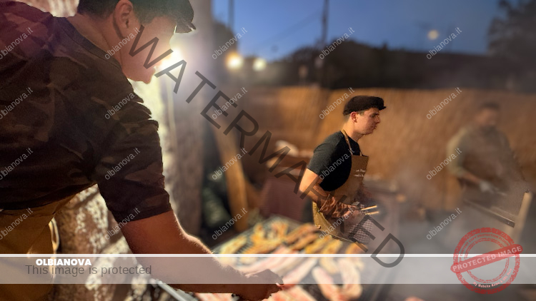 Protagonista indiscusso il cibo della tradizione: la zuppa gallurese preparata con fresa e brodo di carne mista, i chiusones fatti rigorosamente a mano, la pulpedda servita nel pane con cipolle marinate, la pancetta alla griglia e il vino locale.