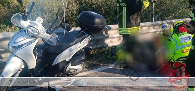 Per cause da accertare lo scooter sul quale viaggiavano i due, dopo aver colpito un’autovettura, è andato a finire contro il guardrail. Il conducente ha riportato un grave trauma cranico ed è stato trasportato a Sassari con l’elisoccorso. La donna ha rimediato qualche escoriazione.