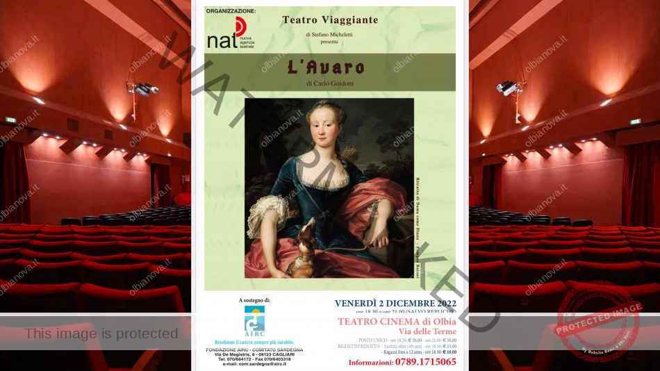OLBIA. Andrà in scena venerdì 2 dicembre, al Cinema Olbia, “L’ avaro” di Carlo Goldoni. Il ricavato dello spettacolo teatrale organizzato da Nat (Nuova Agenzia Teatrale) sarà devoluto alla Fondazione AIRC per la ricerca sul cancro.