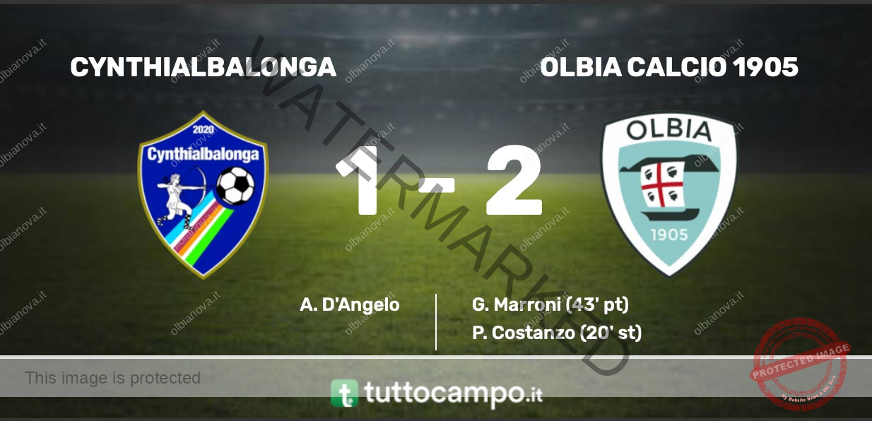 Finisce 2 a 1 per l’Olbia la gara contro il Cynthialbalonga. I bianchi conquistano la seconda vittoria del campionato – ancora una volta in trasferta – e portano a casa i tre punti. I gol sono stati messi a segno al trentanovesimo da D’Angelo per i padroni di casa su rigore molto dubbio, poi al quarantatreesimo Marroni e al sessantaseiesimo Costanzo chiudono le sorti della gara.