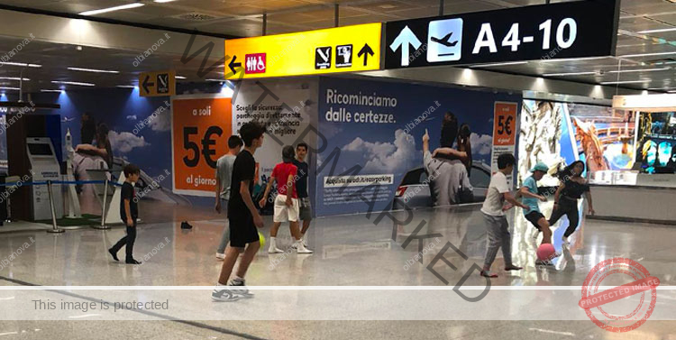 A nulla è valsa l’informazione degli operatori della sicurezza che hanno avvertito gli addetti al gate di tenere a terra l’aereo per qualche minuto. Il tempo di svolgere le normali operazioni. Niente. E per i bambini è cominciata la lunga attesa ingannata con una partitella di pallone (foto).